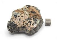 Коллекция Систематическая коллекция, №87159. Светло-розовато-коричневые крупнопластинчатые выделения до 5 см. с щербаковитом, дельхайелитом и адуляром в тонком пегматитовом прожилке в рисчоррите.