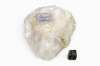 Коллекция Систематическая коллекция, №87539. Бледнофиолетовые и бесцветные призматические столбчатые кр-лы до 2 х 1 см. с "оплавленной" поверхностью в белом мраморе. Длина экспоната 9.0 см.