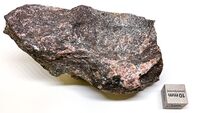 Коллекция Систематическая коллекция, №87676. Темнокоричневые пластинчатые выделения вдоль прожилка в ро донитовом скарне. Длина экспоната 10 см.