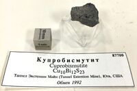 Коллекция Систематическая коллекция, №87700. Голубоватосерые кр-лы (0.3 мм.) с побежалостью в кварце в кварц- сульфидном агрегате. Длина экспоната 2.0 см.