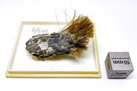 Коллекция Систематическая коллекция, №87838. Асбестовидные коричневатые выделения. Длина экспоната 4.0 см.