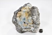 Коллекция Систематическая коллекция, №87959. Друза зональных (голубое ядро, бледнорозовая периферия) уплощенных расщепленных кр-лов до 5 см., в инкрустированной мелкокристаллической корочкой коллинсита полости в крупнозернистом доломите. Длина экспоната 10 см.