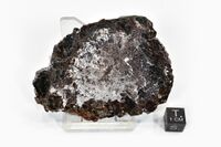 Коллекция Систематическая коллекция, №88041. Белые мелкокристаллические корочки по трещинам спайности и в пустотках во флогопите. Длина экспоната 7.0 см.