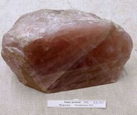Коллекция Систематическая коллекция, №88080. Массивный блок розового кварца. Приполирован. Размер штуфа 27х17х11см. Длина экспоната 27.0 см.