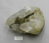 Коллекция Систематическая коллекция, №88083. Сросток кристаллов горного хрусталя размером до 21см с октаэдрами пирита размером до 4см.Размер штуфа 23х17х12см. Длина экспоната 23.0 см.Размер минерала 4.00 см.