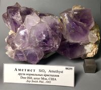Коллекция Систематическая коллекция, №88255. Друза бледноокрашенных кристаллов до 5х4 см с пластинчатым агрегатом альбита в основании. Длина экспоната 14.0 см.