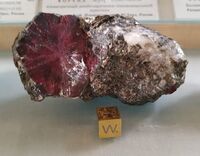Найден: хребет Тайнеу, река Махар-Рузь, массив Рай-Из, Полярный Урал, Россия.Минералы-спутники: Флогопит, хромпикотит. Расположен на витрине exp1-3