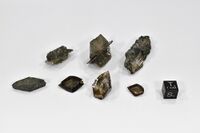 Коллекция Систематическая коллекция, №88415. Разного габитуса двойники по (100) до 5х2х1.4 см из трещин сланцев хрусталеносных погребов Длина экспоната 5.0 см.
