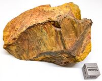 Коллекция Систематическая коллекция, №88453. Прожилок около 3 см сложенный параллелноволокнистым крокидолитом, частично замещенным кварцем (тигровый глаз). В железистом кварците. Длина экспоната 10 см.