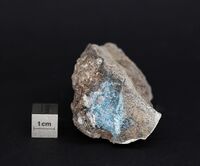 Коллекция Систематическая коллекция, №88532. Голубые тонкозернистые выделения на обожженном алевролите. Длина экспоната 6.0 см.