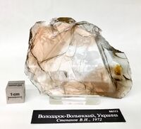 Коллекция Систематическая коллекция, №88552. Выкол по спайности с секториальной -голубой и розовой окраской. Длина экспоната 8.0 см.