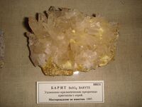 Коллекция Систематическая коллекция, №88831. Удлиненно-призматические кристаллы с серой, Длина экспоната 12.0 см.