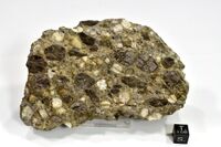 Коллекция Систематическая коллекция, №88889. Порфировые выделения светло-серых 0,7-1,5см пластинчатых кристаллов в эффузиве, олигоклаз. Длина экспоната 12.0 см.