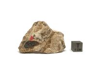 Коллекция Систематическая коллекция, №88919. Красная пропитка кварцевых обособлений в ганофиллитовом агрегате. Длина экспоната 5.0 см.