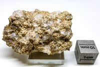 Коллекция Систематическая коллекция, №88923. Кремовые слюдоподобные чешуйчатые агрегаты в кварце. Длина экспоната 5.0 см.Размер минерала 1.00 см.