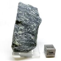 Коллекция Систематическая коллекция, №88938. Массивные светло-зеленые выделения, с серо-зеленым везувианом?. Длина экспоната 7.0 см.