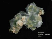 Коллекция Систематическая коллекция, №88956. Друза зеленых прозрачных зональных сдвойникованных по (111) кристаллов до 3.5см. Длина экспоната 14.0 см.Размер минерала 3.50 см.
