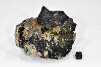 Коллекция Систематическая коллекция, №88990. Черный смолистый 5см в черном эгирине и кварце. Длина экспоната 13.0 см.Размер минерала 5.00 см.