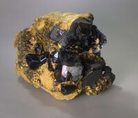 Коллекция Систематическая коллекция, №89119. Друза сдвойникованных кристаллов до 2.5 см на прокварцованном песчанике. Длина экспоната 6.5 см.