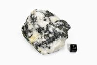 Коллекция Систематическая коллекция, №89179. Зернисто-чешуйчатый агрегат 6х12 мм диаметром с тетраэдритом, замещает белый метаморфизованный кварц по неправильным границам зерен. Длина экспоната 7.0 см.Размер минерала 1.20 см.