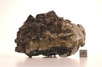 Коллекция Систематическая коллекция, №89219. Друза бурых кристаллов на кварце Длина экспоната 14.0 см.Размер минерала 2.00 см.