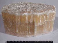 Коллекция Систематическая коллекция, №89397. Фрагмент параллельно-шестоватого прожилка желтоватого цвета толщиной 10см. Длина экспоната 16.0 см.