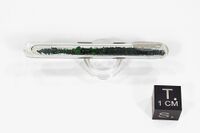 Коллекция Систематическая коллекция, №89591. Мелкие обломки с темно-зелеными кристаллами пийпита до 0,1 мм со светло-зеленым неизвестным минералом. Материал запаян в ампулу.Размер минерала 0.01 см.