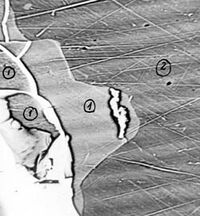 Коллекция Систематическая коллекция, №89734. Аншлиф с эталоном нового минерала в запресовке для микрозонда. Изображение на прилагаемом фото. Длина экспоната 1.0 см.
