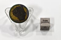 Коллекция Систематическая коллекция, №89794. Зерно в запресовке для микрозонда. Изображение и данные о составе на прилагающейся картинке. Длина экспоната 2.5 см.