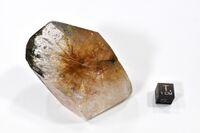Коллекция Систематическая коллекция, №89867. Пучки рыжих игл до 2см в кварце с включениями хлорита. Огранка кварца искуственная. Длина экспоната 7.0 см.