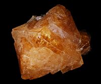 Коллекция Систематическая коллекция, №89909. Сросток коричневато-желтых блочных дипирамидальный кристаллов, наибольший из которых размером 12см. В основании чешуйчатые агрегаты мусковита. Длина экспоната 12.0 см.Размер минерала 12.00 см.