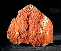 Коллекция Систематическая коллекция, №90000. Корка ярко-оранжевых с поверхности и желтых внутри сферолитов аурипигмента на доломите. Длина экспоната 35.0 см.