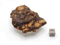 Коллекция Систематическая коллекция, №90028. Гизингерит представлен в виде растрескивающихся корочек, плотных, опаловидных, с лаковым блеском, темно-коричневого цвета. В корочках наблюдаются светло-бурые пятна размером до 2 см гексагональной формы, возможно, образовавшиеся по включениям другого минерала (кварца?). Длина экспоната 10 см.