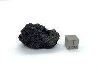 Коллекция Систематическая коллекция, №90165. В тусклых пятнах на лаве извержения Везувия 1841 года. Длина экспоната 3.0 см.
