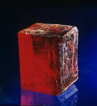 Коллекция Систематическая коллекция, №90217. Выколотый по спайности параллелепипед 4.5х3х2,5см (с фрагментами естественных граней) темно-красного прозрачного виллиомита. Длина экспоната 4.5 см.