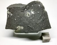 Коллекция Систематическая коллекция, №90249. Изометричные кристаллические зерна до 1см в базальте. Длина экспоната 7.0 см.Размер минерала 1.00 см.