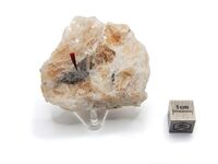 Коллекция Систематическая коллекция, №90370. Серое кристаллическое зерно размером около 1,5см в гигантозернистом агрегате ридмержнерита. Длина экспоната 6.0 см.