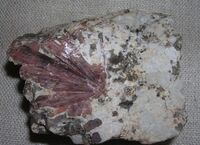 Коллекция Систематическая коллекция, №90492. Буровато-розовый пучок расходящихся призматических кристаллов размером 2-3,5см в измененном гранитоиде. Длина экспоната 5.0 см.Размер минерала 3.00 см.