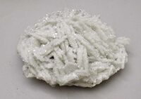 Коллекция Систематическая коллекция, №90496. Щетки бесцветных таблитчатых кристаллов стильбита размером до 2-3мм полностью облекающие пластинчатые кристаллы папиршпата (размер до 5см) кальцитовой друзы. Длина экспоната 16.0 см.