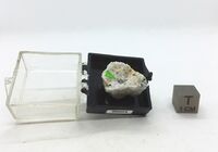 Коллекция Систематическая коллекция, №90604. Сростки бесцветных изометричных кристаллов до 0,5мм в полости среди альбита. Длина экспоната 2.0 см.Размер минерала 0.05 см.