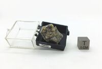 Коллекция Систематическая коллекция, №90605. Темно-зеленый таблитчатый кристалл размером 2мм с кварцем в полости в измененном роговике.. Длина экспоната 2.0 см.Размер минерала 0.20 см.