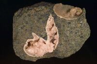 Коллекция Систематическая коллекция, №90790. Сферолитовая корка на стенках и перегородках раковины из "икряной" руды. Длина экспоната 7.0 см.Размер минерала 4.00 см.