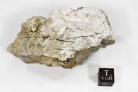Коллекция Систематическая коллекция, №91059. Снежно-белые тонкозернистые агрегаты на обожженном алевролите. Длина экспоната 7.0 см.