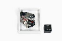 Коллекция Систематическая коллекция, №91292. Изометричное розовое зерно расцветаеваита размером 0.7см в ультраагпаитовом пегматите с нефелином, микроклином, эгирином, лампрофиллитом, пектолитом. Длина экспоната 3.0 см.Размер минерала 0.70 см.