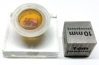 Коллекция Систематическая коллекция, №91294. Бесцветное прозрачное зерно в запресовке эпоксидной смолы - препарат для микрозонда.