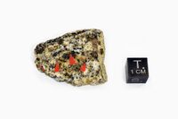 Коллекция Систематическая коллекция, №91315. Коричневые зерна бираита-(Ce) размером до 0,1см в срастании с темным грязно-зеленым тернебомитом-(Ce), c черными идиоморфными зернами ферриалланита-(Ce). В кальцит-арагонит-стронцианитовом карбонатите. Длина экспоната 4.5 см.Размер минерала 0.10 см.
