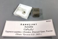 Коллекция Систематическая коллекция, №91323. Темно серые зерна размером менее 1мм в желатиновой капсуле. Длина экспоната 0.1 см.