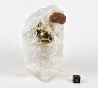 Коллекция Систематическая коллекция, №91638. Пинакоидально-ромбоэдрический уплощенный кристалл стиллвеллита размером 2.5см в кварце с полилитионитом, ридмержнеритом, эгирином. Длина экспоната 11.0 см.Размер минерала 2.50 см.