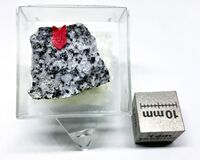 Коллекция Систематическая коллекция, №91742. Бесцветные прозрачные кристаллы сакрофанита размером до 0.2мм в пустотке в щелочной породе из вулканической брекчии. Длина экспоната 2.0 см.