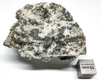 Коллекция Систематическая коллекция, №91866. Бесцветные стеклоподобные агрегаты в ударно метаморфизованном гнейсе Длина экспоната 7.0 см.